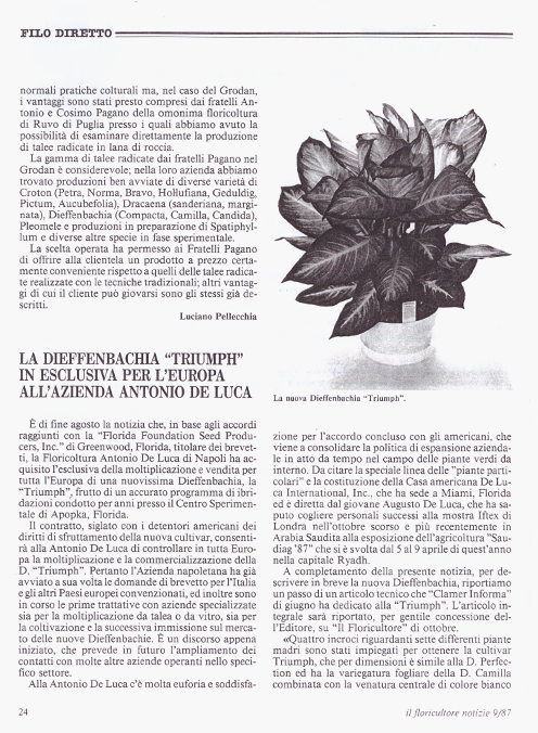 Since 1870 the De Luca Family has taken a special pride in producing and marketing the finest ornamental plants for interiors and landscaping uses. Antoniodeluca® Farms Inc. is the United States based arm of De Luca companies, founded in Napoli, Italy.