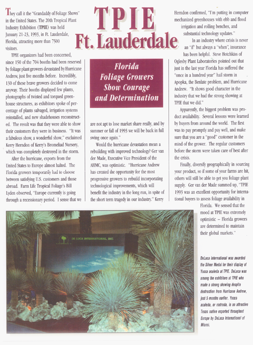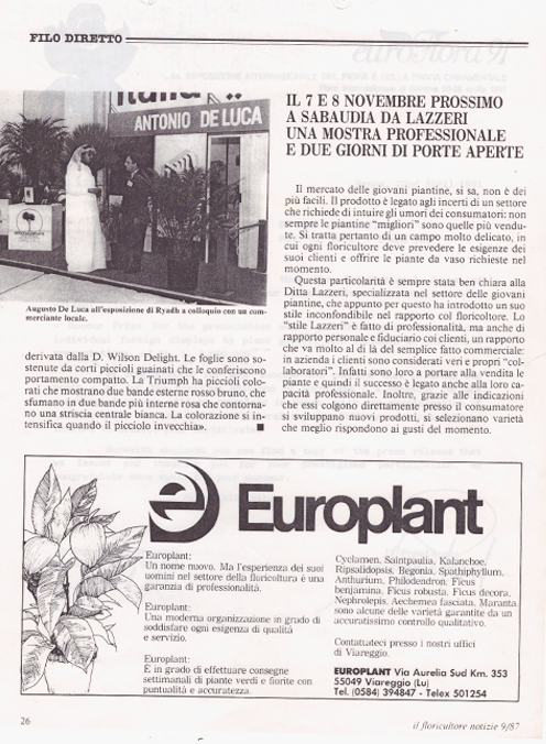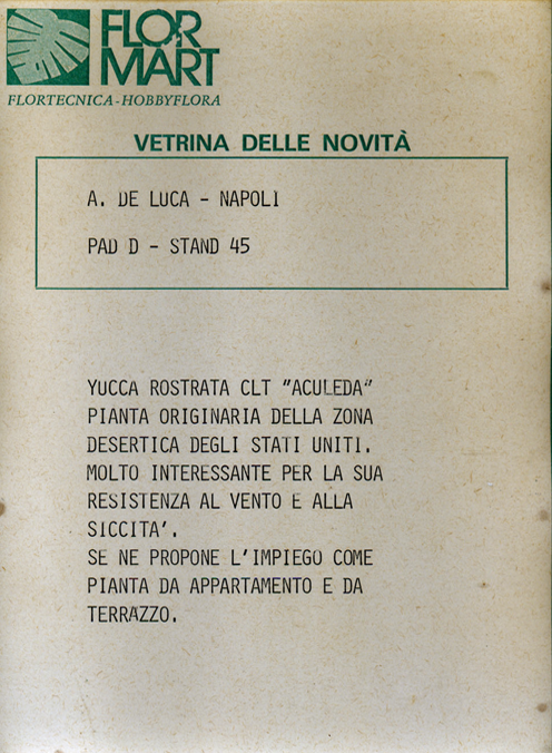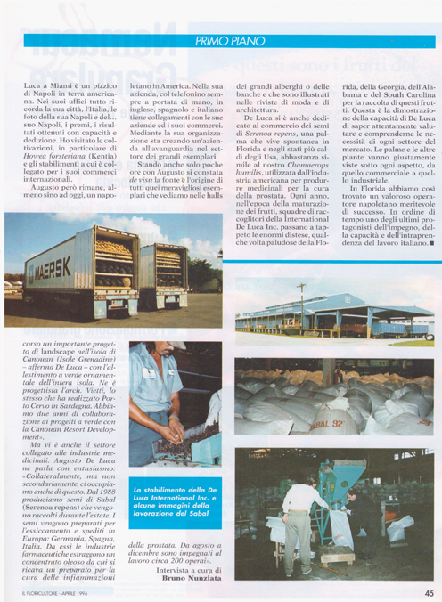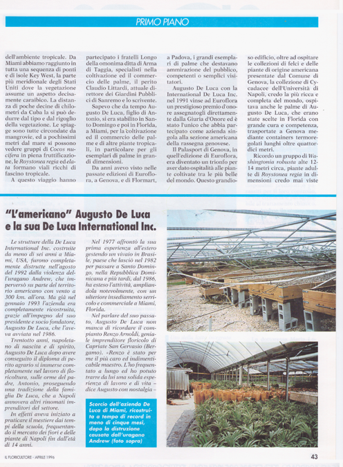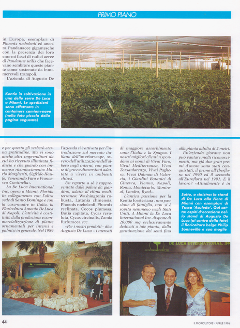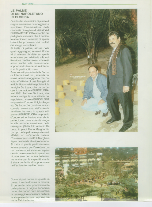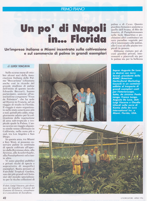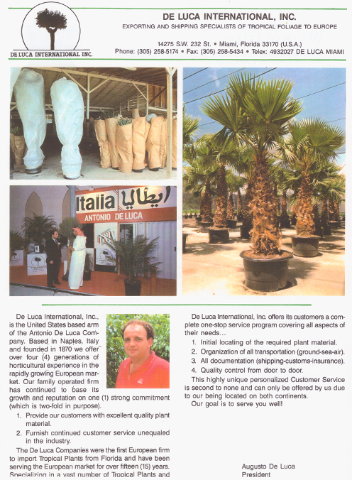 The Antoniodeluca® Farms Inc. were the first firm to import tropical plants from Florida and have been serving the European market for over fifty (50) years, specializing in a vast number of Tropical and Sub-tropical plants, as rare and unique palms, Cycads and Tropical Foliage.